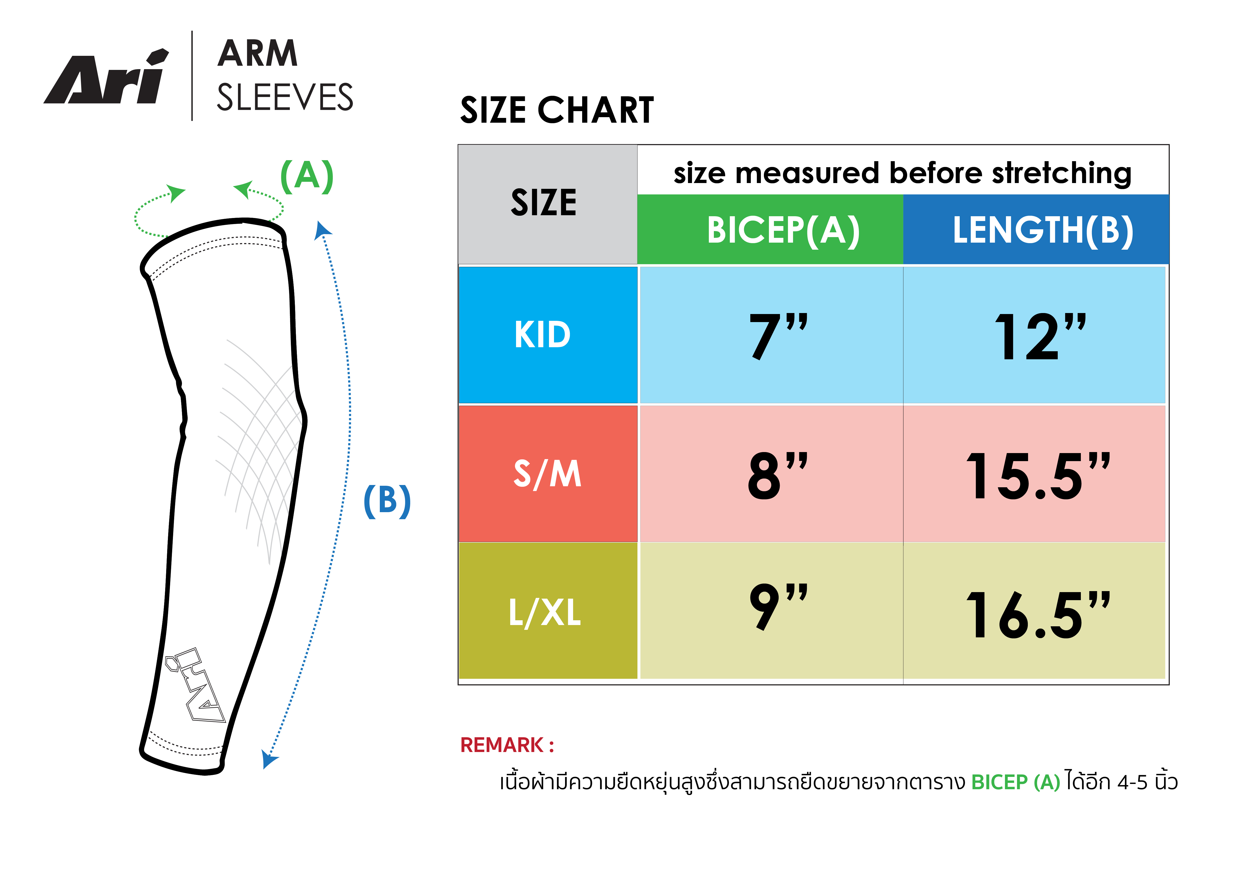 ปลอกแขน Ari ผลิตจากเนื้อผ้าสัมผัสเรียบลื่น มีความยืดหยุ่นและกระชับ สามารถปกป้องผิวจากรังสียูวีได้